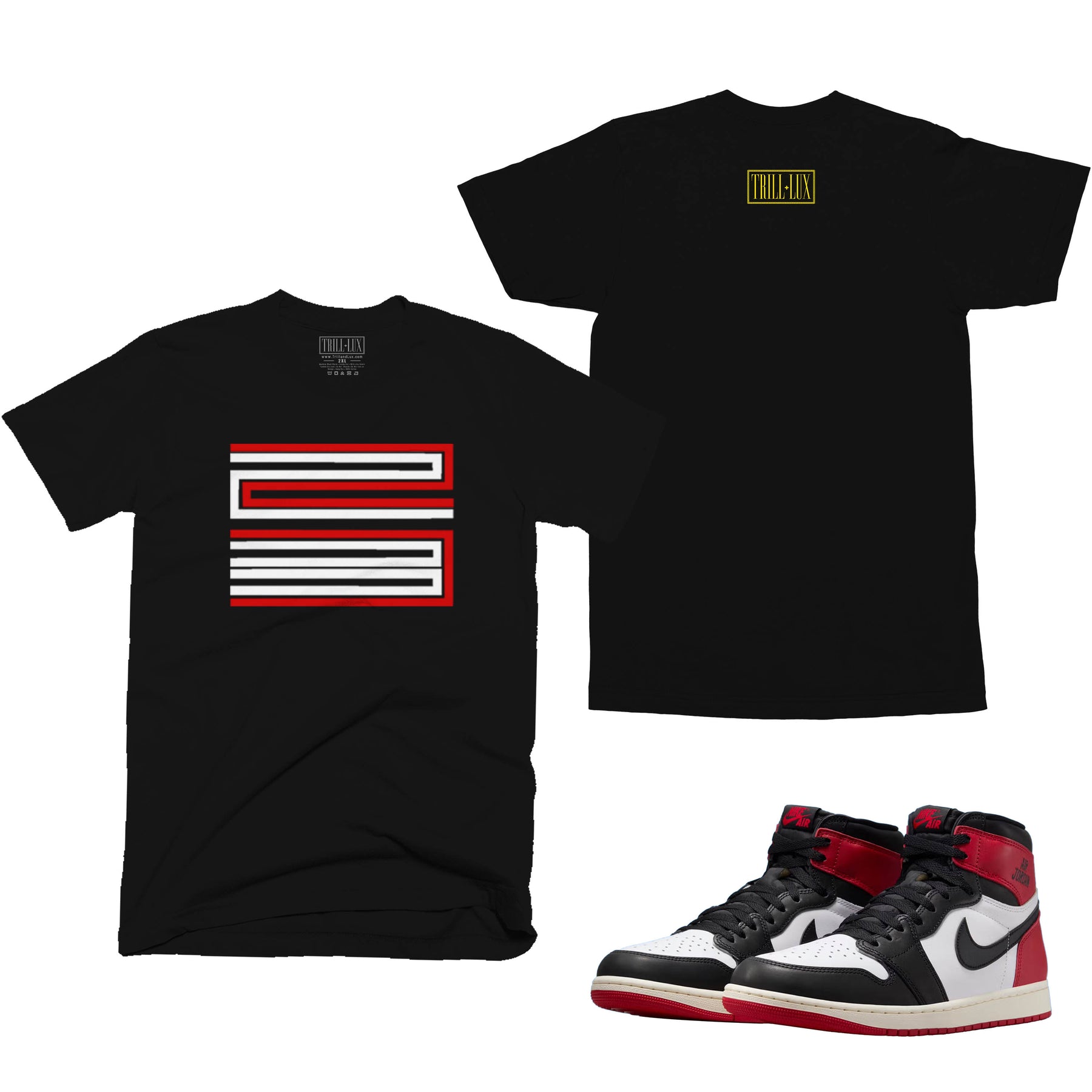 Trill & Lux: 23 T-shirt and Jogger Outfit Match Jordan 1 Black Toe Reimagined