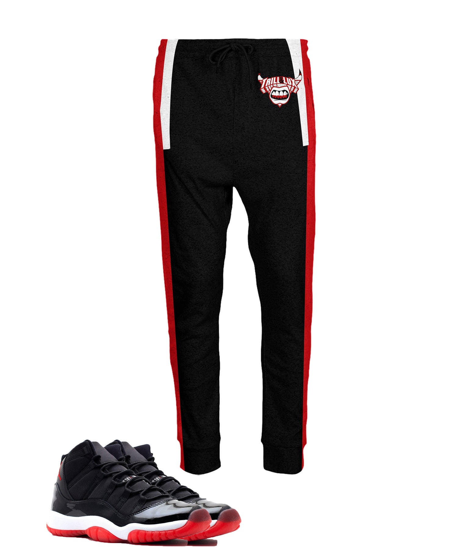 Trill and Lux | Air jordan 11 Bred Colorblock Inspired | jogging pants | XI | Black|Red